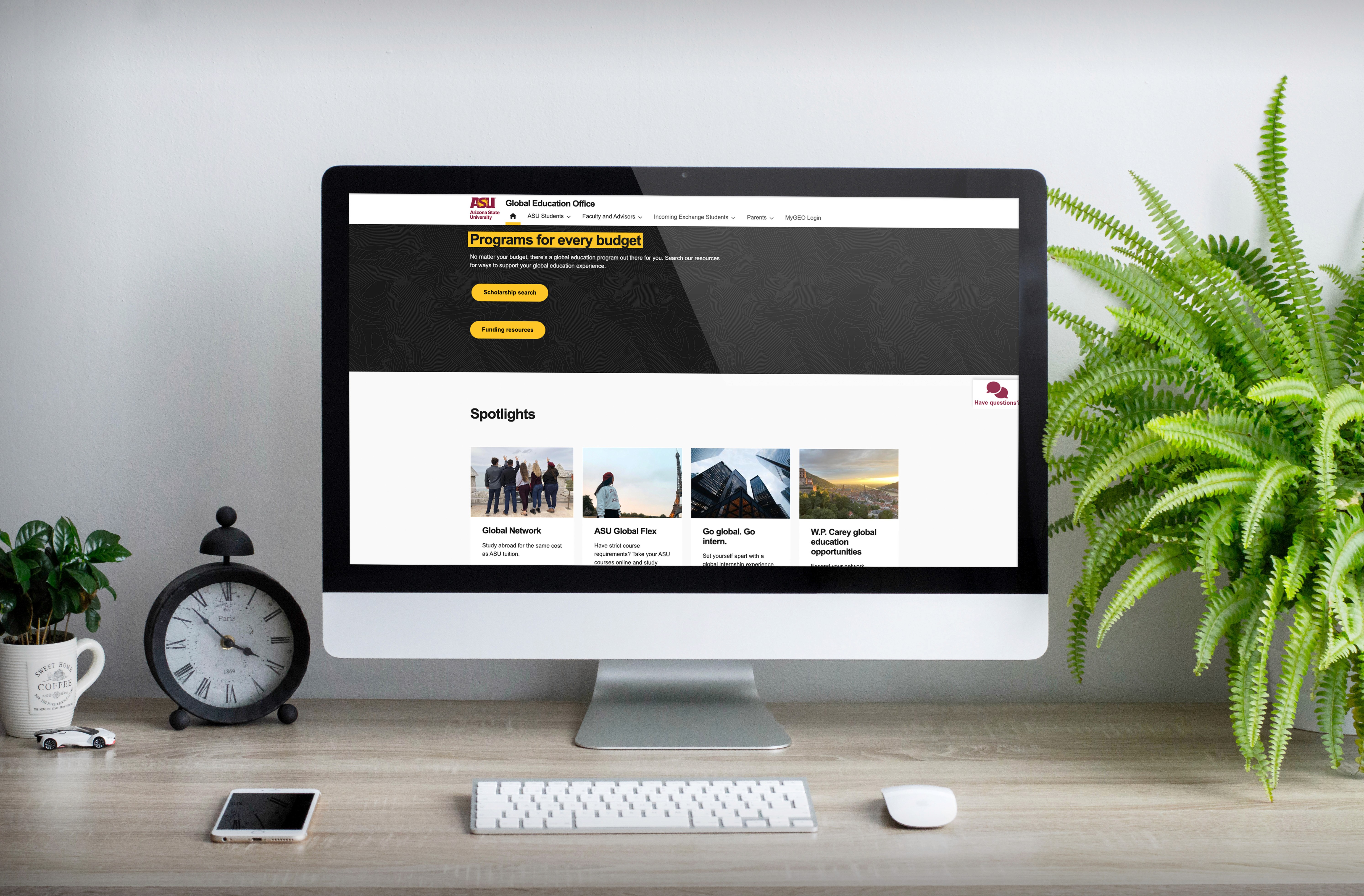 The ASU Global Education Office (GEO) website offers global education programs accessible to all students. Regardless of their background or academic and career goals, ASU students can participate in study abroad opportunities, gain international work experience, enhance their research skills in a global setting, and contribute to the global community.
